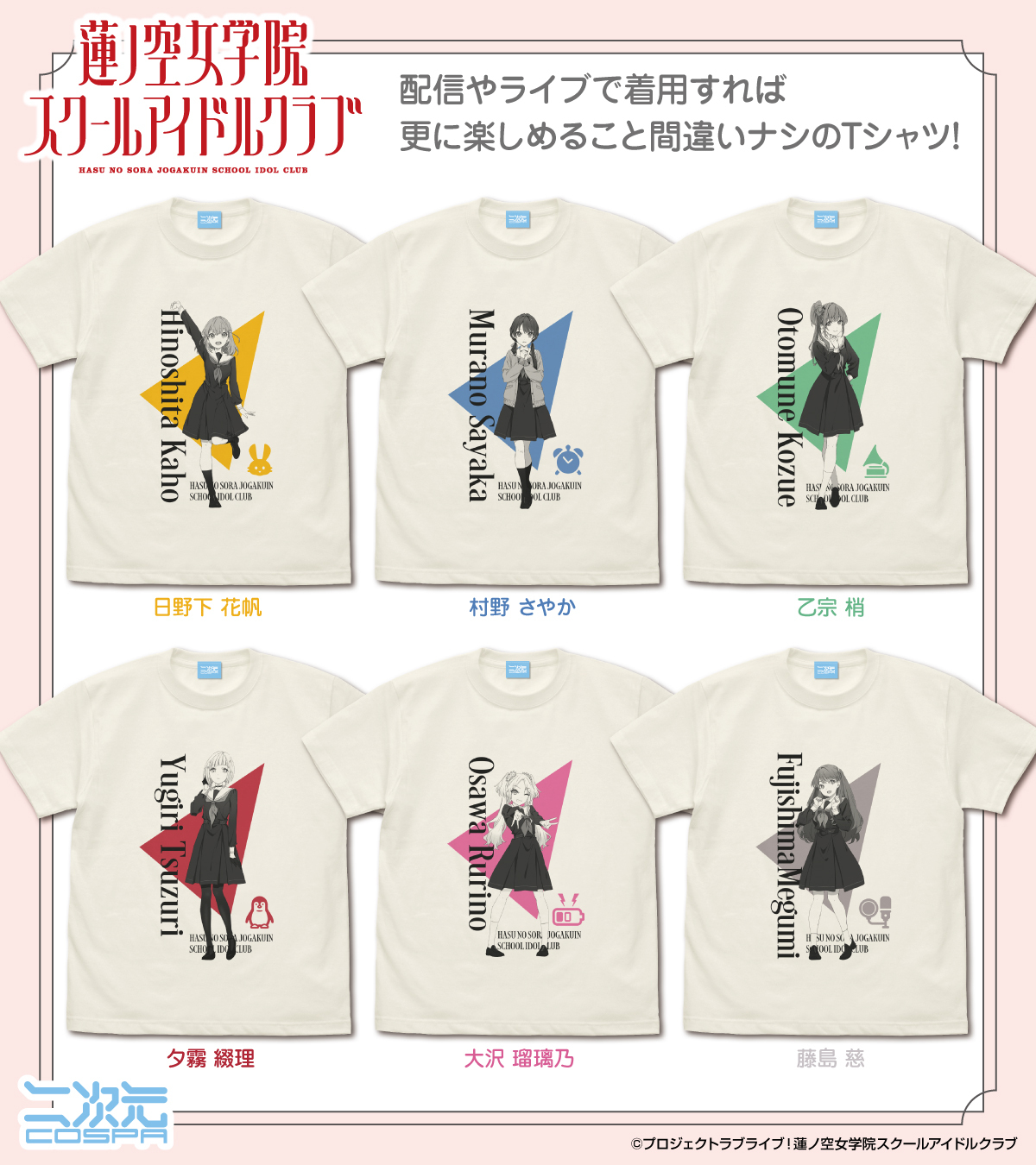 それぞれの「Tシャツ」が二次元コスパから登場です!
