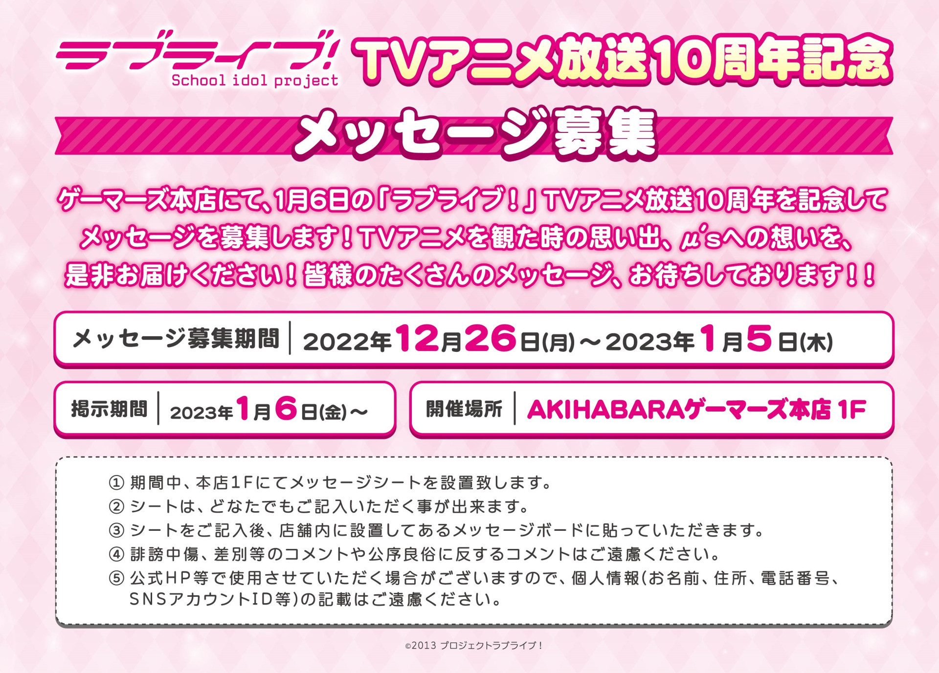 AKIHABARAゲーマーズ本店「スクールアイドルスペース」よりお知らせ